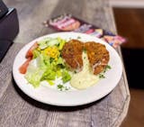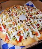 Served on pita bread with tzatziki sauce, lettuce, tomatoes, and onion.