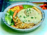 Pasta with shrimp in sauce of your choice .Comes with salad and our homemade bread.