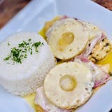 Chicken breast fried in a light batter, topped with a creamy lemon sauce.