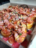 Ground beef, cheddar cheese, lettuce, tomatoes & ranch dressing.