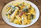 Sauteed chicken, spinach & sun-dried tomato in garlic parmesan alfredo sauce.