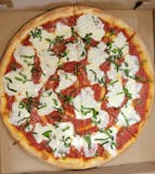 Thin crust brushed with olive oil & garlic, fresh mozzarella, and spotted with home made grandma sauce!