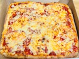 Thick Sicilian crust, provolone, topped with pizza sauce and covered in parmigiana cheese.