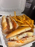 Chopped chicken fingers with marinara sauce & topped with mozzarella.