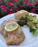 Chicken breast in egg batter, sauteed in lemon juice.