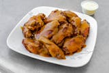 With a side of blue cheese or ranch, dipping sauce (on the side or on top of the wings) and the lemon comes on top of the wings.