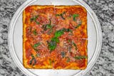 Original Detroit-style pizza. Wisconsin brick cheese, tomato basil sauce, topped with shaved parmesan cheese.