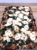 White pie, spinach, ricotta, mozzarella, oregano.