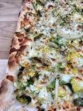 White pie with mozzarella seasoned Brussel sprouts & caramelized onions.