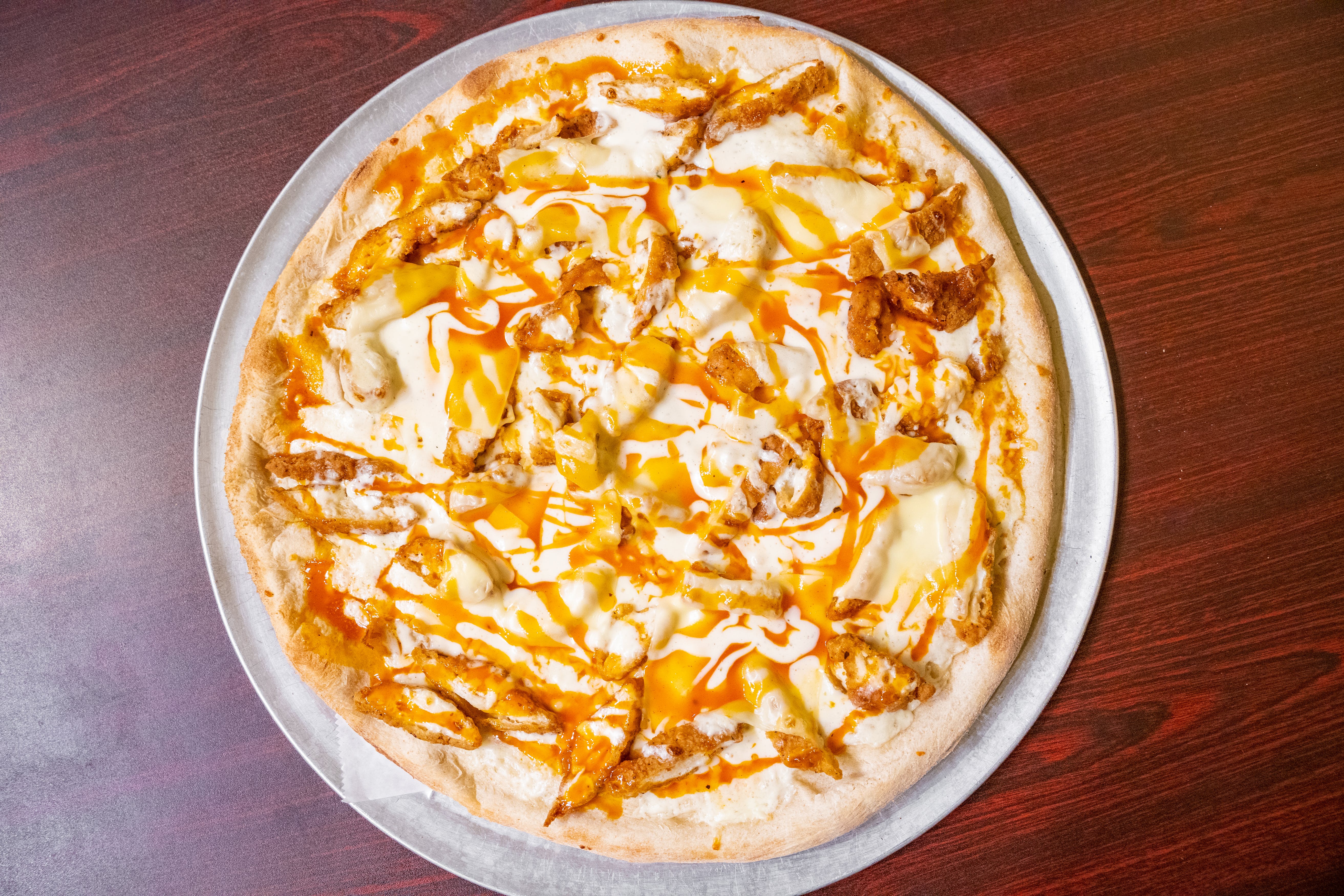 Breaded chicken, ranch dressing, our famous wing sauce, mozzarella, and American cheese.