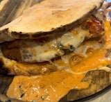 Pizza folded with chicken cutlets, vodka sauce, fresh mozzarella and parmesan cheese. Served with a side of vodka sauce.