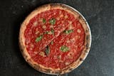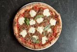 Crushed tomato sauce, mozzarella, and crumbled wood-fired Italian sausage.