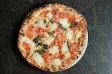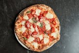 Crushed tomato sauce, mozzarella di bufala, and grape tomatoes.