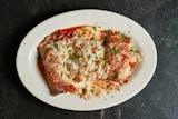 Baked, breaded eggplant, mozzarella, and ricotta in a tomato basil sauce over pasta.