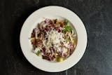 Crisp romaine, diced red and green apples, chopped celery, dried cranberries and candied walnuts in a creamy honey and lemon dressing with a touch of balsamic and crumbled blue cheese