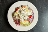 Veal bolognese lasagna layered with our house made crepes and ricotta and topped with shaved Parmigiano-Reggiano.
