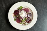 Vegan mozzarella, artichokes, red onion, arugula, balsamic glaze.
