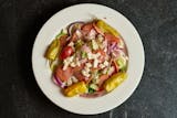 Our fresh homemade mozzarella, prosciutto, sliced vine tomatoes, and roasted peppers.