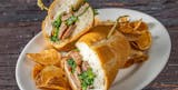 Large cannoli shell piped with our homemade ricotta cream and chocolate chips.