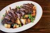 Marinated in balsamic glaze or just grilled served with roasted potatoes and string beans.