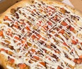 15" x 15 " Square Pizza with provolone & mozzarella cheese topped with vodka sauce, shredded parmesan cheese and pesto