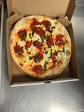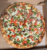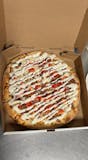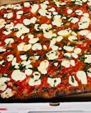 Sicilian crust with mozzarella, marinara sauce, garlic, pesto & diced fresh mozzarella.