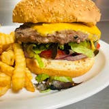 Grilled chicken, mix of romaine, red leaf lettuce, tomatoes, cucumbers, Bermuda onion, kalamata olives & pepperoncini peppers.