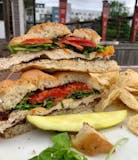 Grilled chicken, fontina cheese, roasted peppers, romaine & pesto.