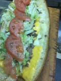 Provolone cheese, lettuce, tomatoes, onions, and sub-dressing.