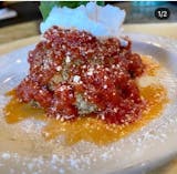 Sliced eggplant stuffed with fresh ricotta and mozzarella with tomato sauce.
