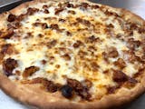 Sausage, pepperoni, meatball, bacon, mozzarella and tomato sauce.