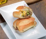 Philly steak with peppers, onions & mushrooms with american cheese.