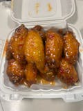 Wings sauces: Spicy Asian, BBQ, buffalo, or spicy BBQ.