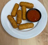 Breaded eggplant, tomato sauce topped with mozzarella cheese.