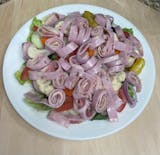 Iceberg and romaine lettuce, tomatoes, onions, black olives, cucumbers, roast beef, turkey and cheese.