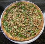 Mozzarella cheese, pizza sauce, diced breaded chicken tossed in Buffalo sauce.