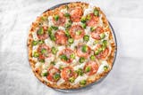 Standard pizza with calamari, shrimp, mussels, and spices.