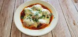 Breaded eggplant topped with mozzarella cheese & tomato sauce. Also Available Gluten-Free