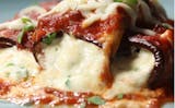 Vegetarian. Breaded eggplant, stuffed and rolled with our homemade ricotta filling, topped with marinara sauce and mozzarella cheese.