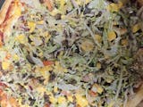 Pepperoni, sausage, mushrooms, onions, peppers & extra cheese.