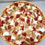 Traditional pizza topped with crispy chicken, ricotta & mozzarella cheese.
