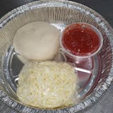 Choose the extras - mozzarella plus your toppings, side of tomato sauce included.