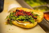 Breaded chicken cutlet coated in our homemade chipotle sauce, topped with fresh bruschetta, balsamic glaze, and ranch.