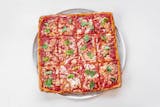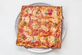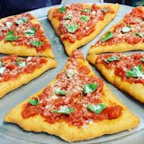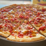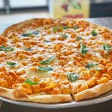 Breaded chicken meets a delectable tomato sauce, all covered in crispy gooey fresh melted mozzarella and parmigiano, and hints of aromatic basil on a crisp yet tender homemade crust!