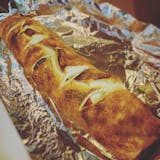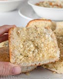 Bread, topped with garlic & olive oil or butter, herb seasoning, baked to perfection. Melts in your mouth and arouses the taste buds.