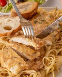 Breaded chicken sauteed with mushrooms in a marsala wine sauce served with your choice of pasta.