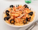 Mussels, clams, Calamari, shrimp in a white wine cherry tomato sauce!!