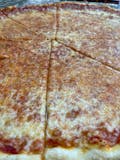 Square thin crust pizza topped with fresh tomato sauce, fresh mozzarella, fresh basil, parmesan cheese, a drizzle of extra virgin olive oil.
