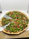 A large 16” pie topped with Frank’s homemade tomato sauce, fresh mozzarella, oregano and hand-picked basil leaves. Baked until the crust is crisp and golden, this pizza brings out the pure flavors of Italy — simple, fresh, and unforgettable.