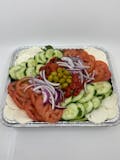 Comes with lettuce, tomatoes, onions, cucumbers & olives.